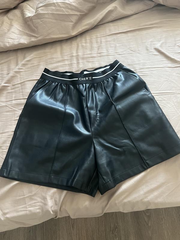 🖤 Стильні чорні шорти з еко-шкіри. ✨ Мають вільний крій та середню посадку, що забезпечує комфорт і свободу рухів. 🔹 Еластичний пояс із брендованою резинкою додає сучасного акценту та зручності. 🔥 Ідеально підходять для створення як casual, так і вечірніх стильних образів.