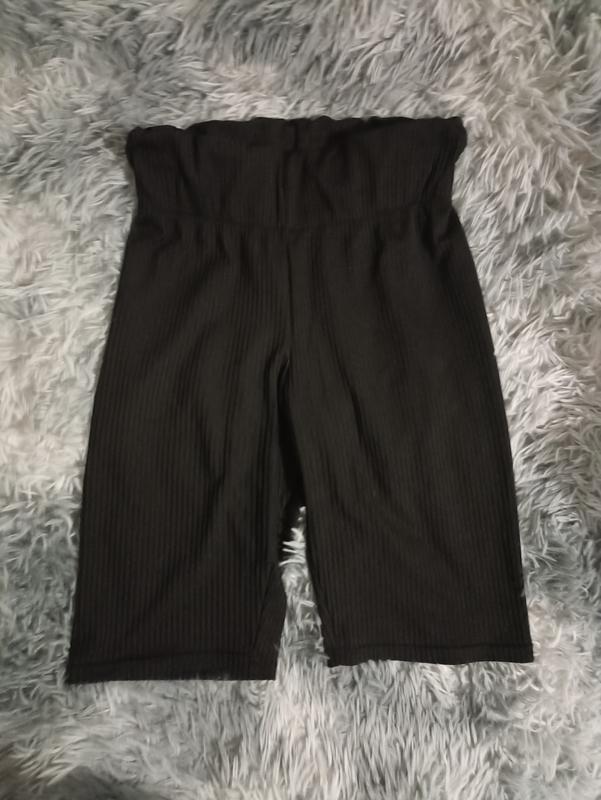 Шорти в рубчик добре тягнуться. Заміри: півобхват талії 31 см, півобхват стегон 45 см, висота посадки 26 /31 см, довжина шортів 51 см, крок 25 см, ширина штанини зверху 24 см, знизу 18 см. Підійдуть на розмір С, М. Стан ідеальний