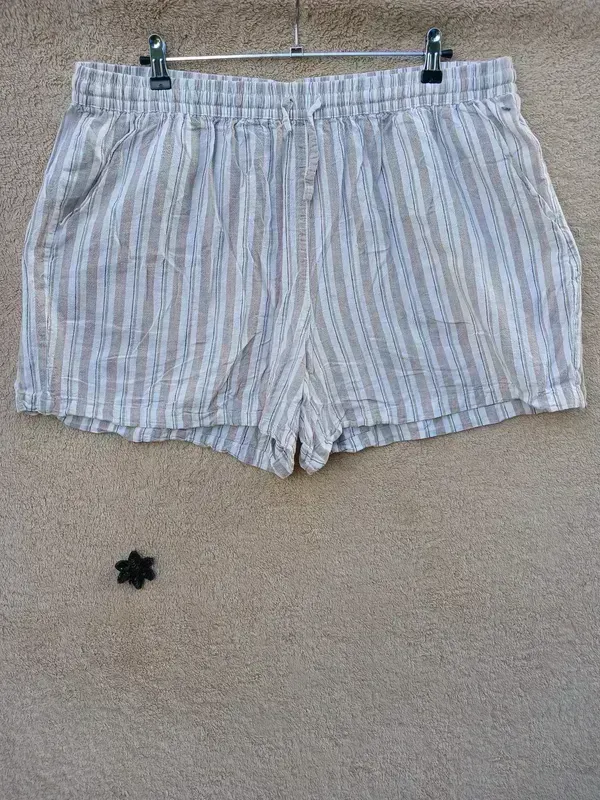 Классные шорты с карманами,лён+вискоза, пояс резинка,состояние идеал ПО пояс 52-64, ПО бедра 70, длина по бокову шву 43 Замeры вeздe половина