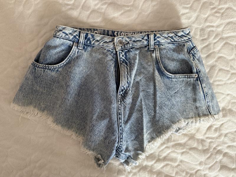 • Матеріал: джинс • Колір: світло-синій • Розмір: S-М (40) • Стан: вживаний (одягались один раз) • Класичний крій з кишенями • Необроблений низ для стильного вигляду