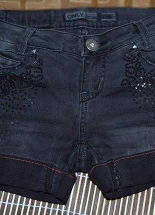 Короткі сірі шорти з паєтками. розмір ХЅ-S. W25 L32