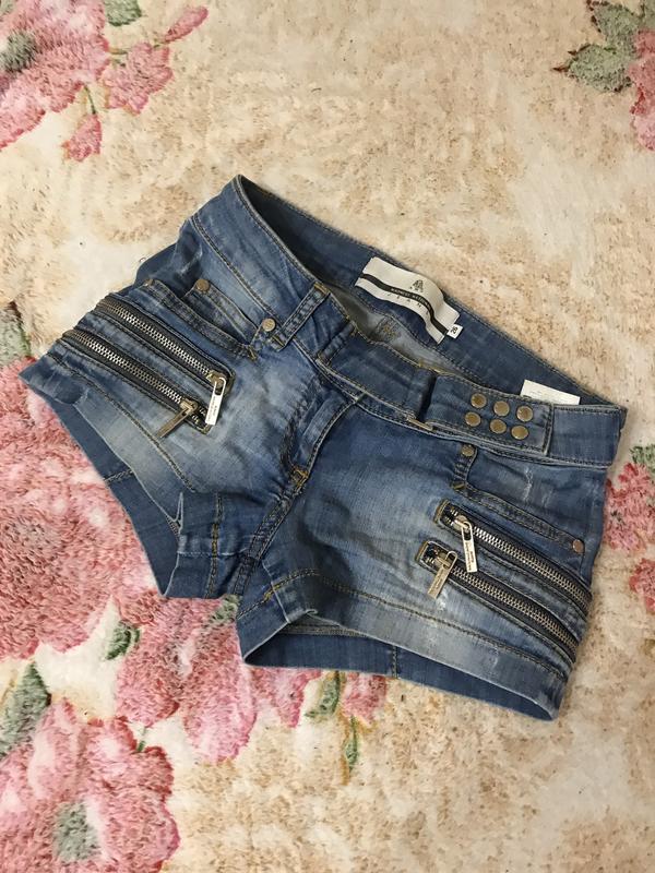 Класні, стильні шорти. Носили, але всього пару разів, так як дуже багато різного одягу. Спереду є пояс на заклепках, який робить модель шортиків більше цікавою. Якість матеріалу, просто на висоті. Продаю набагато дешевше, ніж купували.