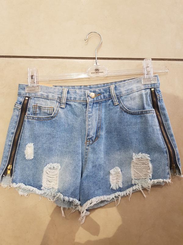 Шорти жіночі джинсові з замочками. Ширі на пояси 39 див.