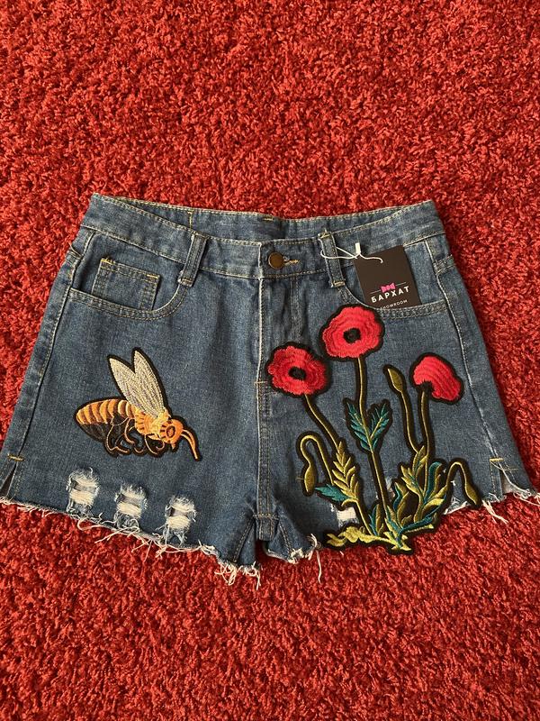 Джинсовые шорты с высокой талией, коротенькие Пояс талия 35 полуобхват, длина 30 см