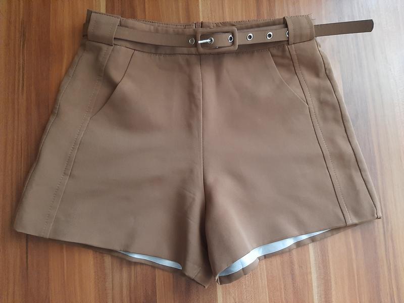 шорті, висока талія з пояском, жовто-коричневого кольору, розмір м, на підкладці