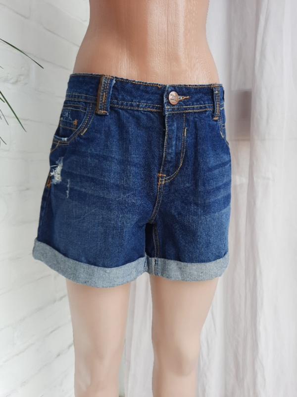 Чудесные шорты из денима,актуальный фасон,ПОТ-42 см,ПОБ-55 см,высота посадки спереди-27 мм,сзади-33 см,полуобхват штанины внизу-33 см,длина изделия-33 см,без дефектов
