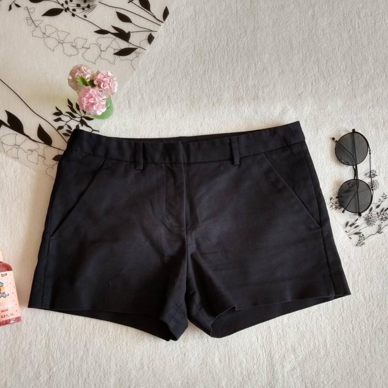 Чёрные шорты из плотной ткани с подворотом zara Basic размер XS безупречное состояние пояс 38 - 46 длина 29 Немного тянутся в безупречном состоянии плотная ткань похожая на атлас
