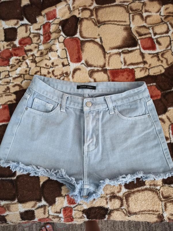 джинсовые шорты голубого цвета размер указан по бирке 28, смотрите по меркам длина 30см пот 33см