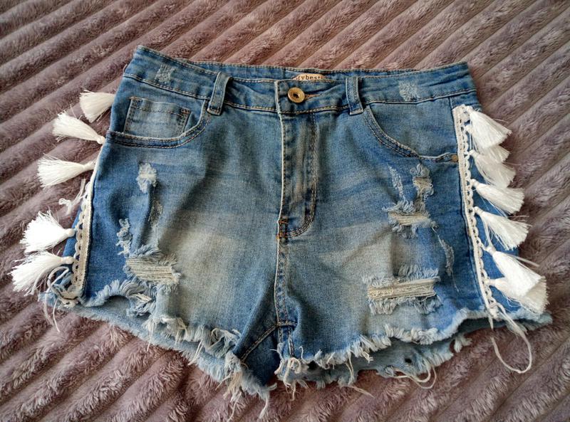 відмінні джинсові шортики, м'які, добре тягнуться, розмір вказано Л, але йде М-ка. довжина пліч - шов :25 см, пояс з 37 см, в сторони тягнеться. відправлю будь поштовою службою, можна оформити шафа-доставку