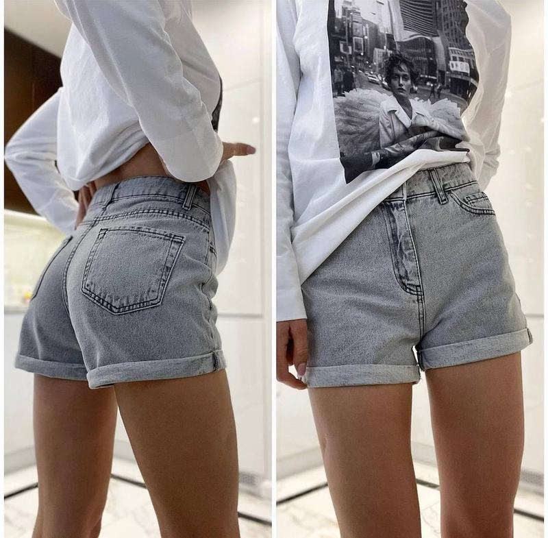 Шорти Мом🌸🌸🌸 Розміри: 34(xs),36(s),38(m),40(l),42(xl) Тканина: джинс бавовна Колір: білий, блакитний, сірий Довжина: 34см Пр-під Туреччина