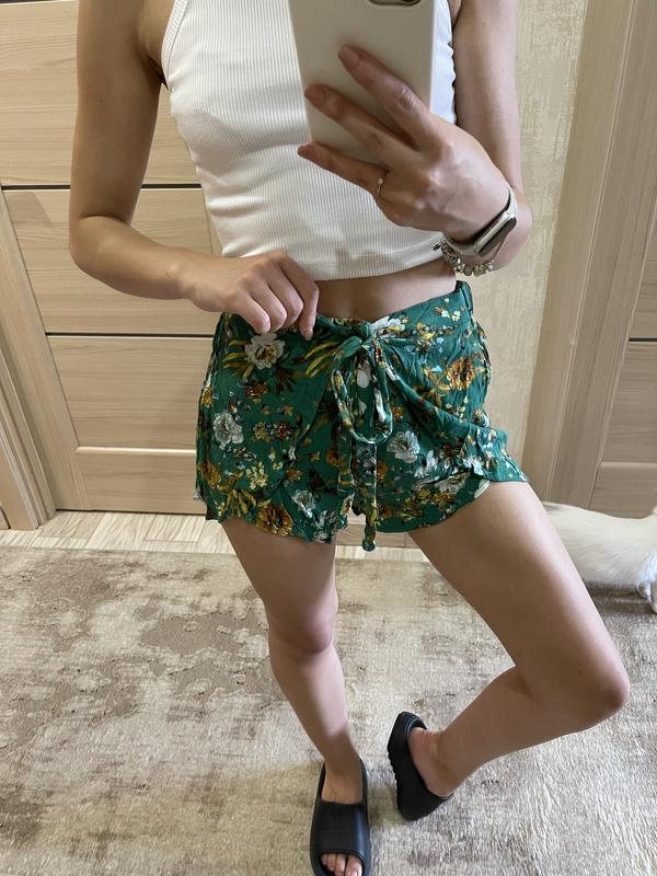 Продам шорті новенькі, дуже приємна тканина з крутим принтом) Розмір Хс-С, на талі резиночка та зверху зав'язуються.