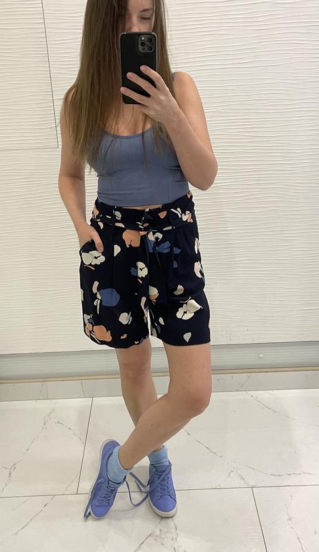 Бермуди у стилі paper bag. В ідеальному стані без будь-яких нюансів. Не просвічують у сонячну погоду. Пасок можна використовувати окремо від шортів в якості прикраси у волосся або на шию. Матеріал типу креп-сатину. Заміри є на фото. Одягнуті на параметри: Зріст 164 талія 72 стегна 90