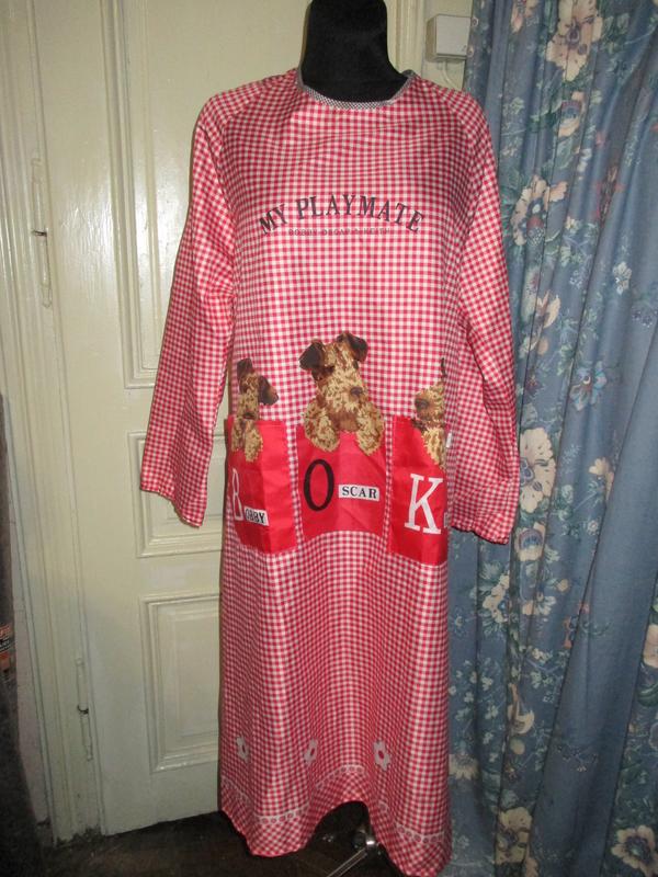 халат красного цвета.полиэстер.ПОГ 58.длина 115.длина рукава от шеи 75см