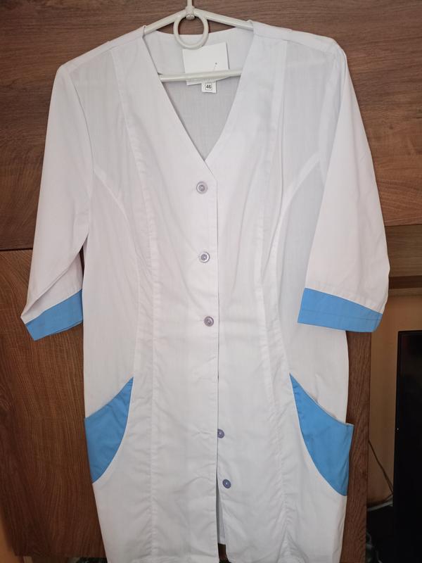 Халат р46 Рукав 3/4, 2 кишені, гудзики, модель приталена Тканина легка, літня Пог 48 см Пот 45 см Поб 49 см Довжина 86 см