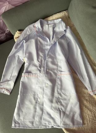 Дуже зручний, на світлі віддає блакитом. напівобхват грудей 47 , напівобхват стегон 49, довжина рукава по зовнішньому краю 59 , довжина 91,5 .