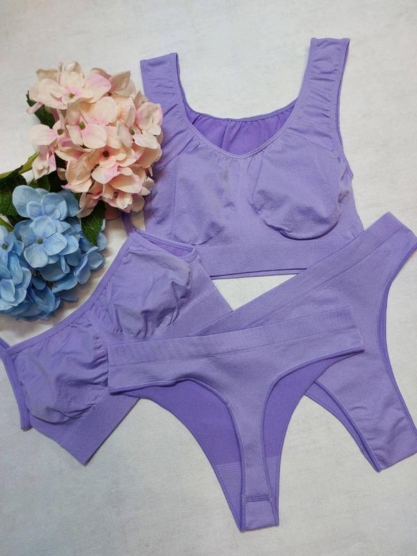Бесшовный комплект топ и трусики лаванда из микрофибры