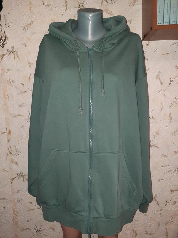 Розмір вказано L, дивіться уважно заміри, буде на більше. Стан дуже хороший, без дефектів. Тканина не тонка, середньої щільності, тягнеться. 78% бавовна, 22% поліестер. З внутрішньої сторони як байка, видно на фото 8. Колір світлий сіро-зелений. !!!! Камера точний відтінок не передає. Більш наближений до реального на останньому фото. довжина від верхньої точки плеча до низу 76. довжина рукава від плечового шва 58, від горловини 81. напівобхват біцепса 30 тягнеться до 34. напівобхват грудей 75 тягнеться до 80. напівобхват талії 74 тягнеться до 79. напівобхват внизу 60 тягнеться до 70. ширина між плечовими швами 64. 71
