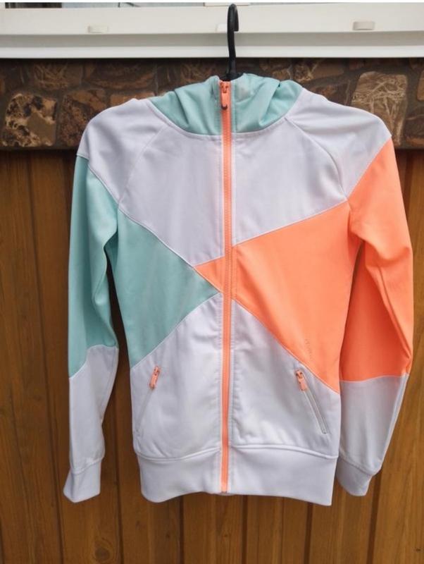 крута спортивна гарної якості кофта, є один нюанс який при носці не так помітно на 5 фото і все. довжина від плеча 59 см рукав від плеча 53 см, ПОГ 38 СМ.