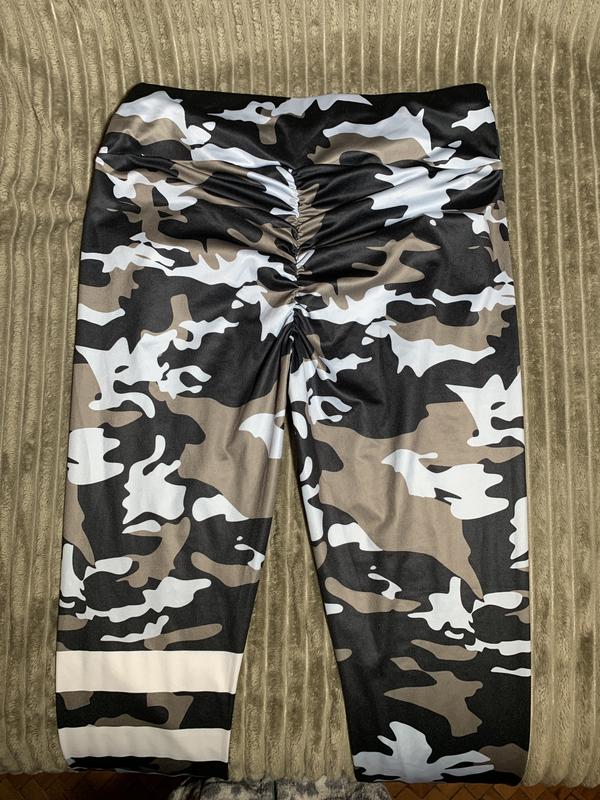 Спортивні лосіни хакі з ефектом пуш апу, пл середині мають шов. Намені виглядають так, оскільки розмір завеликий.