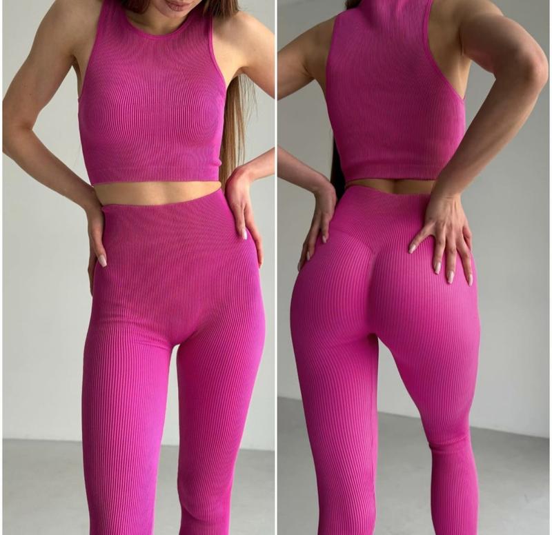 🔥преміум якість🔥 топ-майка + лосини з пуш ап збіркою розмір S/M: обхват грудей 82-92 см обхват стегон 86-96 см ✅️ щільний, не просвічує ✅️ утягуючий, сідає як друга шкіра ✅️ на лосинах широкий двошаровий пояс і пушап збірка ✅️зберігає форму після носіння і прання