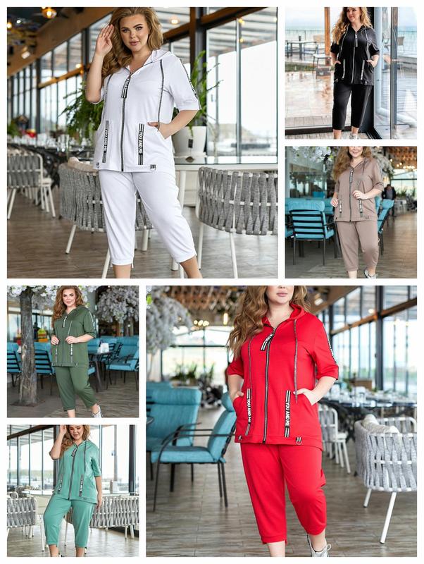 Літній вільний спортивний костюм з двонитки з футболкою та бриджами великі розміри