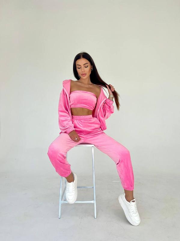 Костюм трійка ▫️Мод 1085 ▫️Тканина - велюр плюш ▫️Розміри - 42-44 і 44-46 ▫️Кольори - чорний, білий, мокко і рожевий