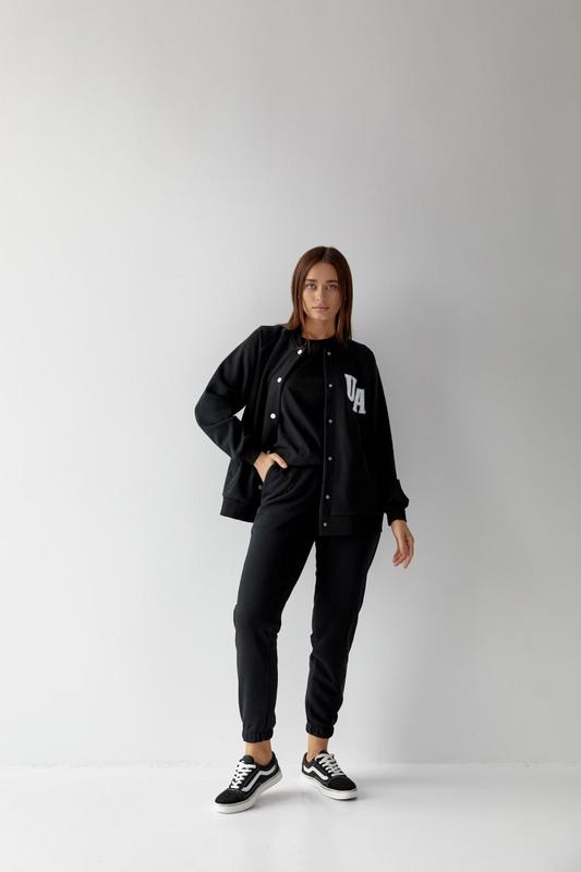 НОВА МОДЕЛЬ З ПЕТЛІ "FLY" UA Спортивний жіночий костюм Бомбер + Джогери з нової колекції Стильний бомбер вільного крою на кнопках, з врізними кишенями по боках та надписом по переду, манжети з основи Штани джогери прямого крою на еластичній резинці та бічними карманами Артикул в СРМ 👉 1382000 Білий 👉 1382022 Світло-Блакитний 👉 1382031 Барбі 👉 1382001 Чорний 👉 1382009 М'ята ▪️ Тканина: петля турецького виробника, преміальної якості пенье ▪️ Не кошлатиться, не вилинює ▪️ Прямий крій, еластична резинка, якісна фурнітура ▪️ XS, S, M, L 💸 Ціна - 1799 грн Відправка 1- 4 роб. дня!
