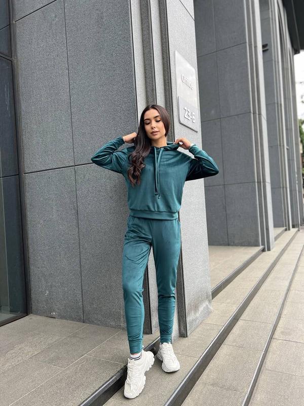 🎨5 кольорів! шикарний жіночий велюровий костюм смарагд смарагдовий женский спортивный