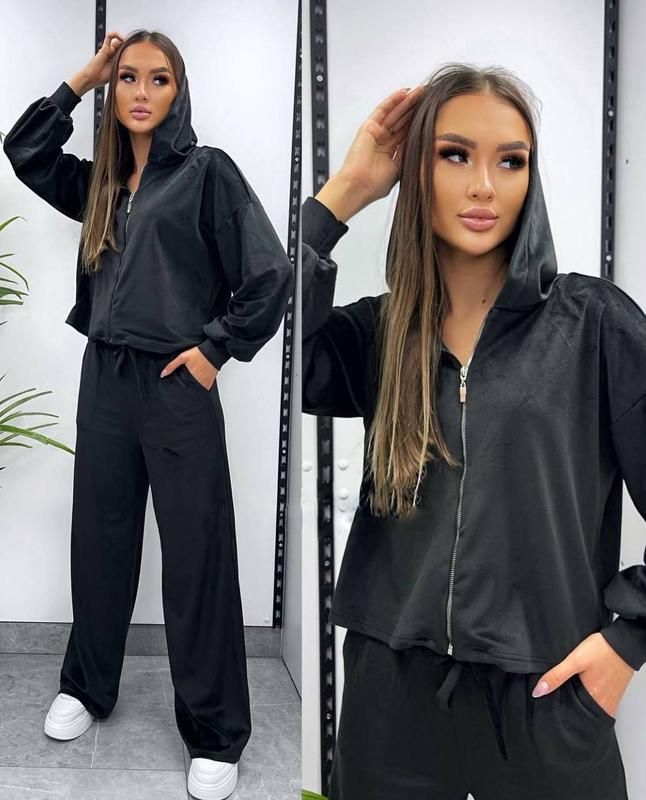 Комфортні плюшеві костюми 📌Кольори: - білий - синій (електрик) - графіт - блакитний - чорний - беж - хакі - рожевий - світло-сірий - темно-синій 📌Мод. 4027 ПФ. (6) 📌Тканина: Велюр Sport (premium) 📌Розміри: 42-44, 46-48 😀Довжина кофти 65см, довжина штанів 104см Відмінна якість ♥️