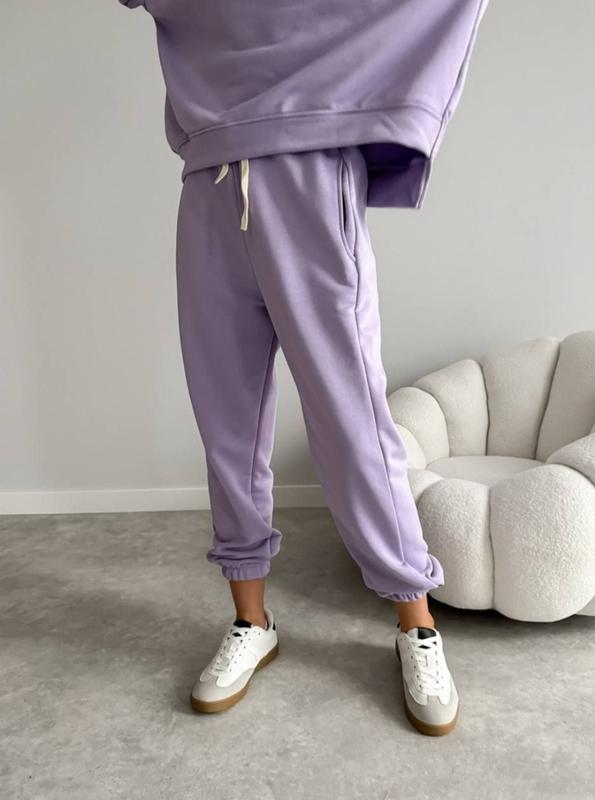 Зручний та стильний костюм, не кошлатиться. Тканина: тринітка - петля. Кольори: лаванда, рожевий, беж, молоко, чорний. Розміри: 42-44, 46-48.