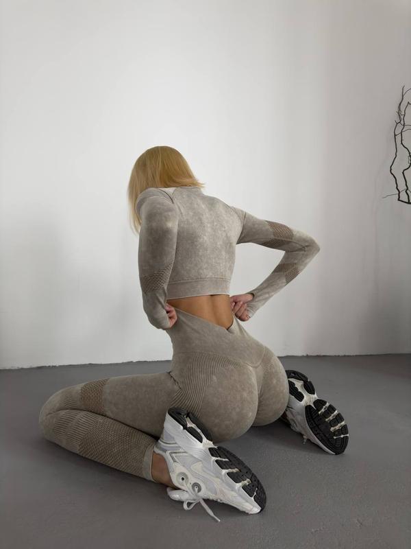 Ефектний пуш-ап фітнес костюм (рашгард із розрізами для пальців + лосіни з пуш-ап ефектом)
