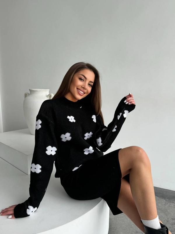 Жіночий в'язаний костюм чорного кольору 26937 ао 42/46
