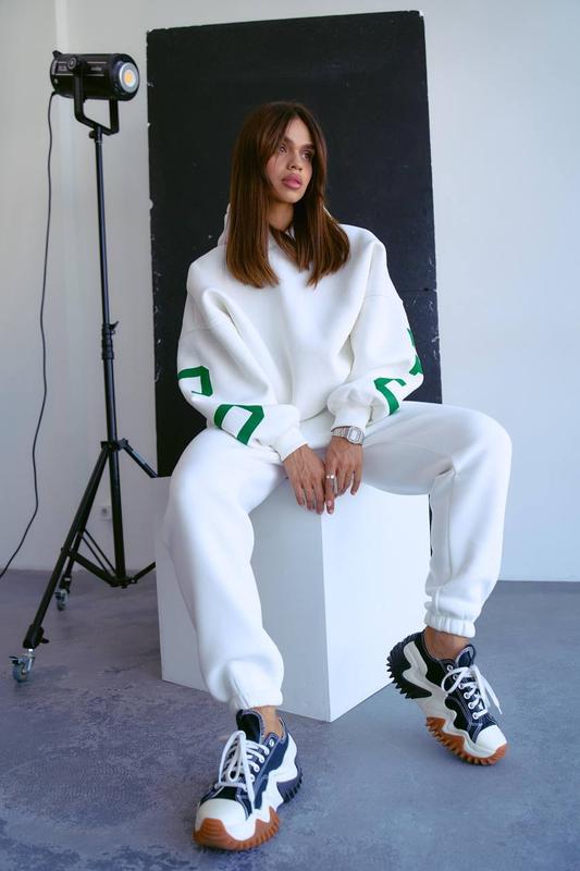 347 Тканина: Дорога Турецька трьохнитка «ПІНЬЄ»( м'яка, тепла, не кашлатиться, не линяє), манжет з рібани на рукавах та внизу кофти. Важливо тканина з висоякісного хлопка з мягким флісом в середині. Колір: беж, голубий, графіт, мокочино, чорний, хакі, барбі, молочний, шоколад Розмір: 42-46, 48-50. Нереально крутий, просто бомбіческий Костюм Chicago з двойним капюшоном Кофта Оверсайз, висока посадка штанів