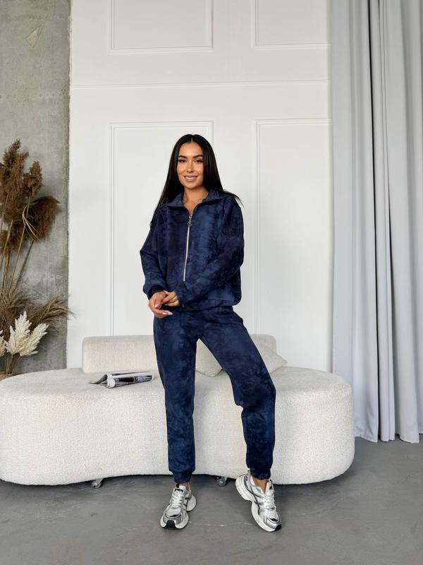 Жіночий теплий спортивний костюм в стилі zara , варенка, ефект тай-дай: худі на змійці та...