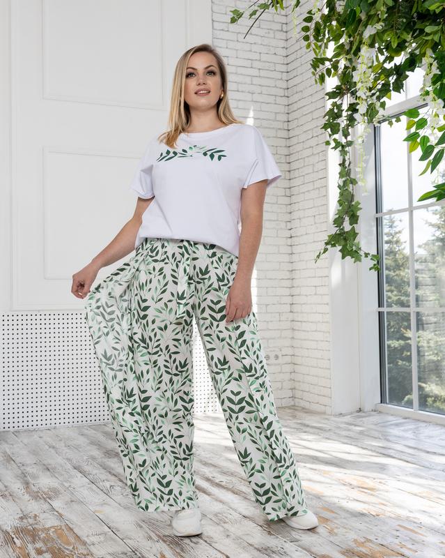 Розміри 44, 46, 48, 50, 52, 54, 56, 58, 60 Тканина футболки - кулір. Брюки-трансформер - штапель.