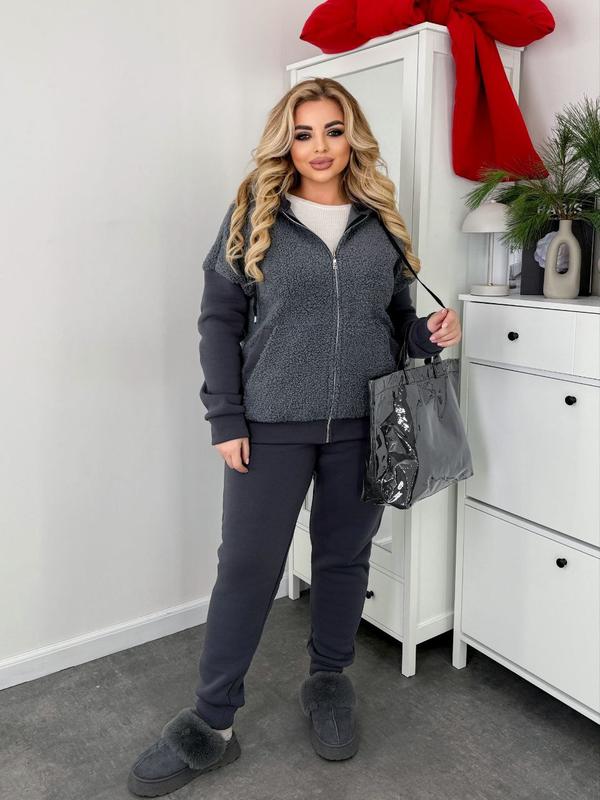 Стильний та затишний спортивний костюм батал, баранчик і фліс, букле тедді, плюс сайз джог...