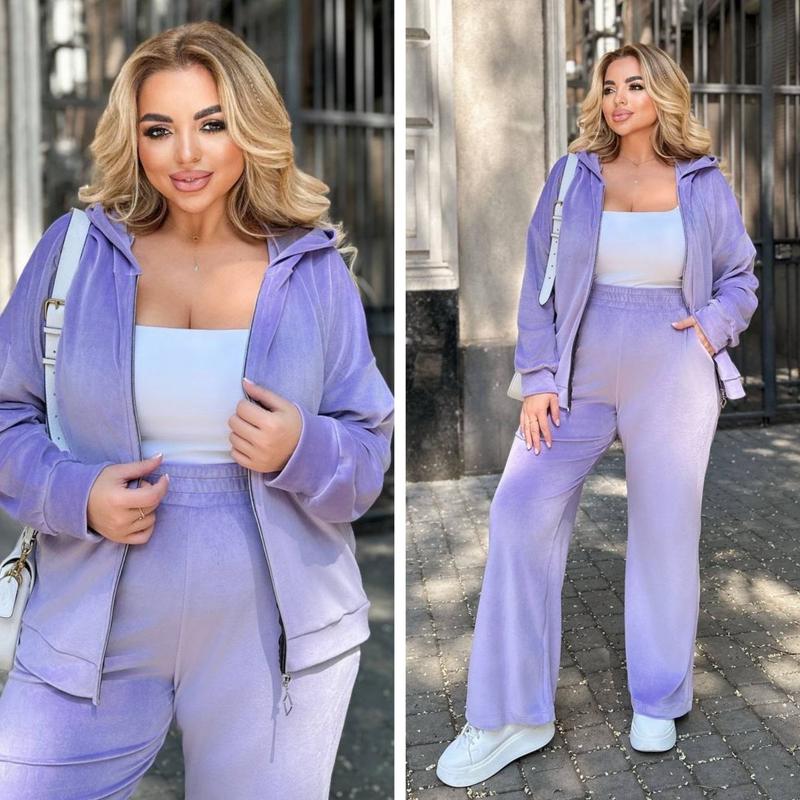 Костюм 😍 Арт 2101253 Мод. 317 Тканина Турецкий велюр, мʼяка, приємна тканина. Розміри: 50-52, 54-56, 58-60 Кольори: Малина, Сливовий, Графіт, Оливка ДУЖЕ ГАРНА ЯКІСТЬ, ВІДМІННЕ ПОШИТТЯ!!! ✏️Заміри✏️ Пояс на резинці 50-52 Ог-130 см, дл кофти 71 см, дл рукава 48 см, От- 80(тягнеться до 110см), Об -120см , дл штанів 109см 54-56 Ог-140 см, дл кофти 73 см, дл рукава 49 см, От - 90( тянеться до 120) , Об -130 см, дл штанів 109 см 58-60 Ог-150 см, дл кофти 75 см, дл рукава 50 см, От - 100( тянеться до 130) , Об - 140 см, дл штанів 109 см