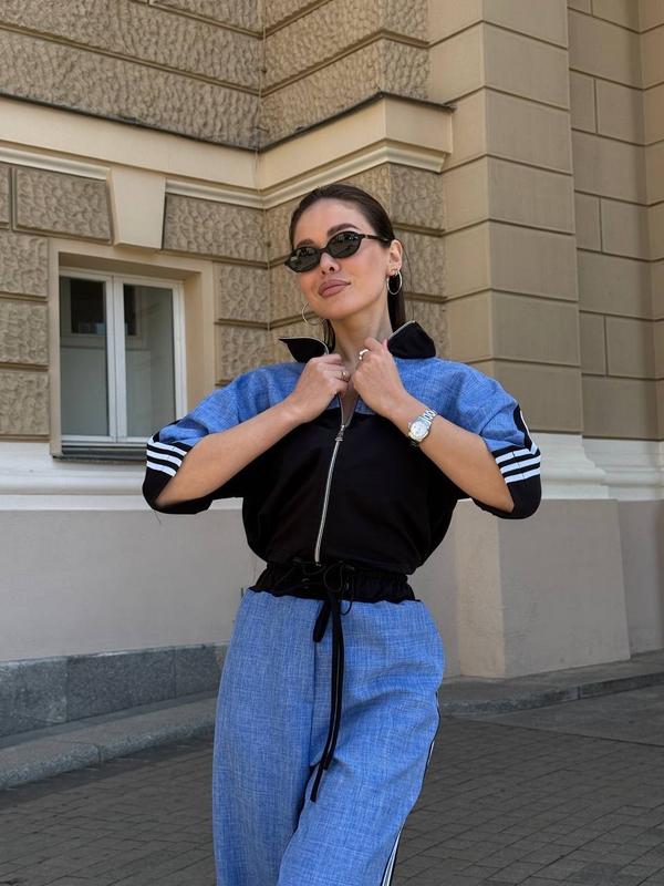 🆕🆕🆕Новинка🆕🆕🆕 🆒Костюм кольоровий ⚠️Ціна - 790 грн⚠️ Кольори: - джинс з білим - джинс з чорним - графіт з білим ➡️Мод. b 1760 ➡️Розміри: 42-44, 46-48 ➡️Тканина: льон камалія + двохнитка ➡️Якість відмінна Заміри: Перший розмір ОГ до 102см, Перший розмір ОБ до 99см Довжина кофти 46см Другий розмір ОГ до 112см Другий розмір ОБ до 110см Довжина кофти 48см ➡️Довжина штанів - 106см Висока посадка