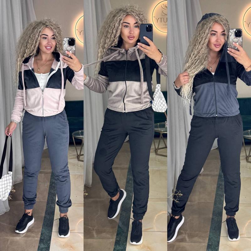 NEW NEW Костюм Мод 2054 1519 Фото наживо ! Тканина велюр спорт LUX Розміри 42-44; 46-48; 50-52 Подвійний капюшон Кольори як на фото Гарна якість Ціна 730 грн