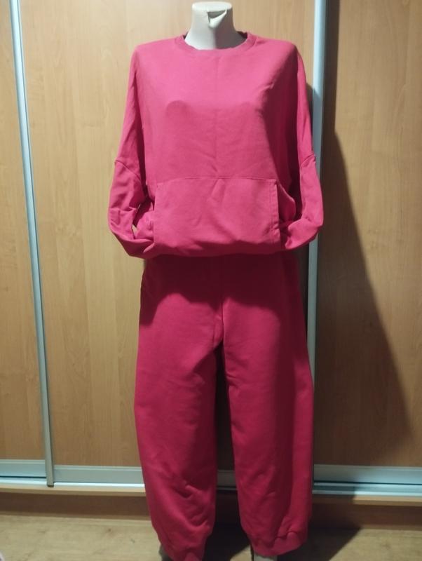 Прикольний костюм,стильно виглядає та гарно сидить,кюлоти широкий, довжина кюлот-88 см,шаг-55 см,пояс-38 см на резинці, ширина штанини зверху -35 см напівобхват,знизу -32 см на резинці,бедра-55 см, кофта довжина -63 см,рукав від горла-79 см, ширина -70 см в грудях, внизу -54 см