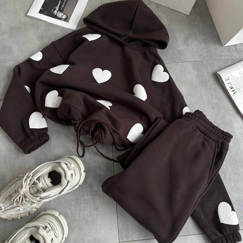 Жіночий повсякденний костюм на флісі худі з сердечками і штани джогери