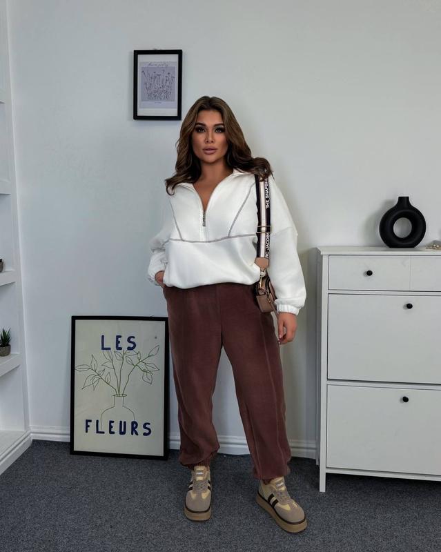 Костюм мод 1160 норма та батал Ціна: 1200 грн Розмір: 42-46 48-52 54-58 Тканина: полар фліс( тепла, щільна тканина) Колір:сірий ,мокко Фото реал