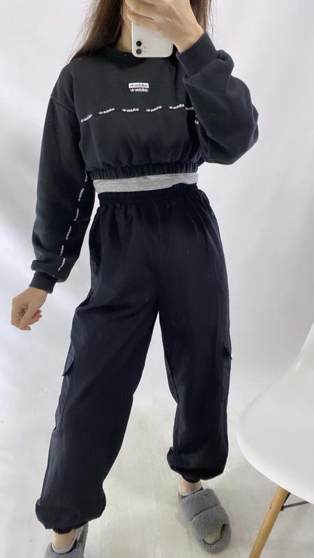 Пояс на резинці ширина 30,5 тягнеться  до 46 см. Стегна 62 Посадка ззаду 39 Довжина по зовнішньому шву 101 Шаговий шов 69 Ширина штанин внизу (резинка)11 Рощмір С/М