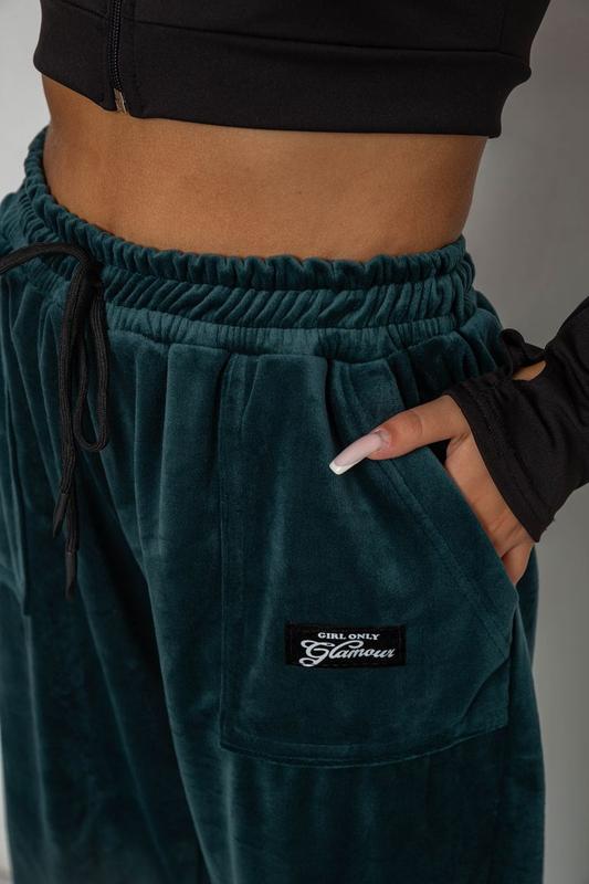 Спортивні штани велюрові жіночі на флісі, колір зелений, 238r58649-1