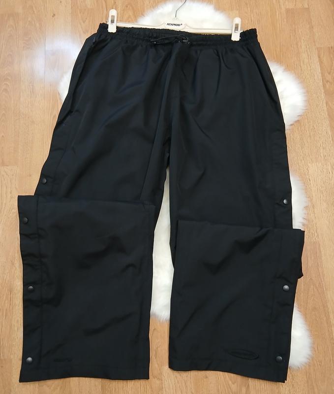 водонепронекні та дихаючі без карманів з ізнанки сітка і від коліна тканина штаніни зашпиляються на кнопки ,під кнопками блискавка. верх щільна тканина плащівка нот 40-54 нос 64 посадка 32/40 довжина 106/80 но штанини 38/26