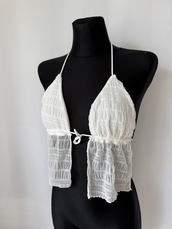 Белый топ топик на завязках с открытой спинкой минималичтичный топик шторка ариель русалоч...
