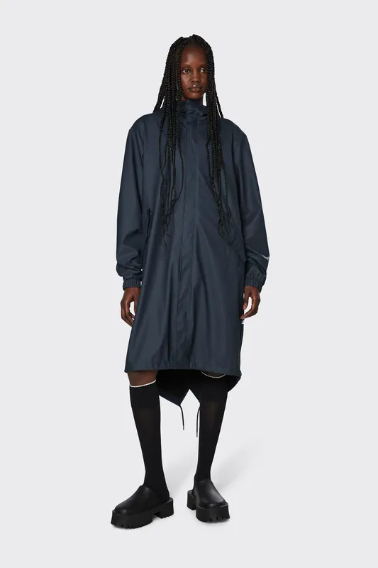 Fishtail Parka - плащ унісекс, що характеризується укороченою спиною і подолом "риб'ячий хвіст" з куліскою. Модель має повсякденний крій зі скошеним краєм. Застібка-блискавка прихована мінімальною планкою на потайних кнопках. Fishtail Parka з кишенями, еластичними манжетами та капюшоном на шнурку з фірмовим вбудованим козирком Ця водонепроникна парку виготовлена з фірмової поліуретанової тканини Rains. Розмір XS Груди 106 Довжина рукава 63 Довжина 109 На офіційному сайті RAINS дощовик можна знайти за назвою - Fishtail Parka