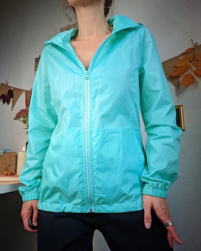 дождевик берюзовый с капюшоном карманы снаружи и внутри, может полностью влезть во внутренний карман размер s: Довжина 65 см Груди 48 см Талія 46 см Знизу 52 см, можно затягнути Плечі 39 см Рукав 62.5 см снизу и капюшон затягивается резинками очень классная и нужная вещь в вашей сумочке