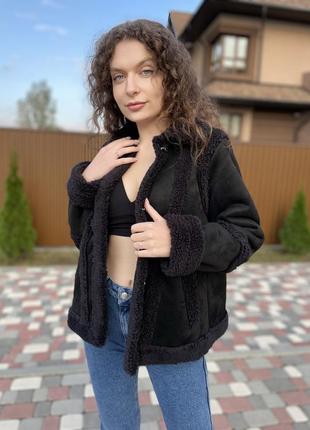 чорна вкорочена дублянка на прихованих кнопках. нова