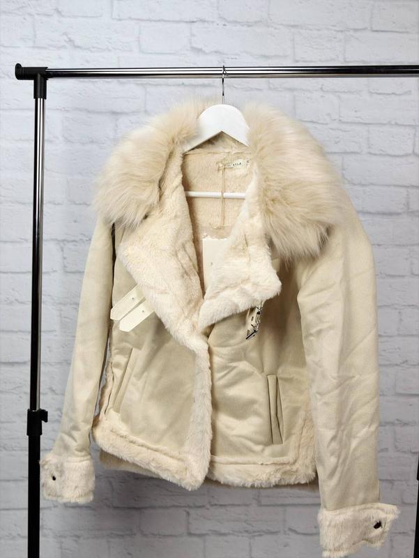 Дубленка короткая замша на меху с меховым воротником теплая зима осень молоко айвори кэмел...